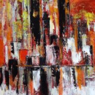 Mes thèmes de prédilection : Paysages, villes, ou encore personnages qui m’interpellent. J’ai débuté dans un style figuratif, puis petit à petit je me suis orientée vers un style plus abstrait me permettant de mettre en œuvre des techniques à l’huile et au couteau.